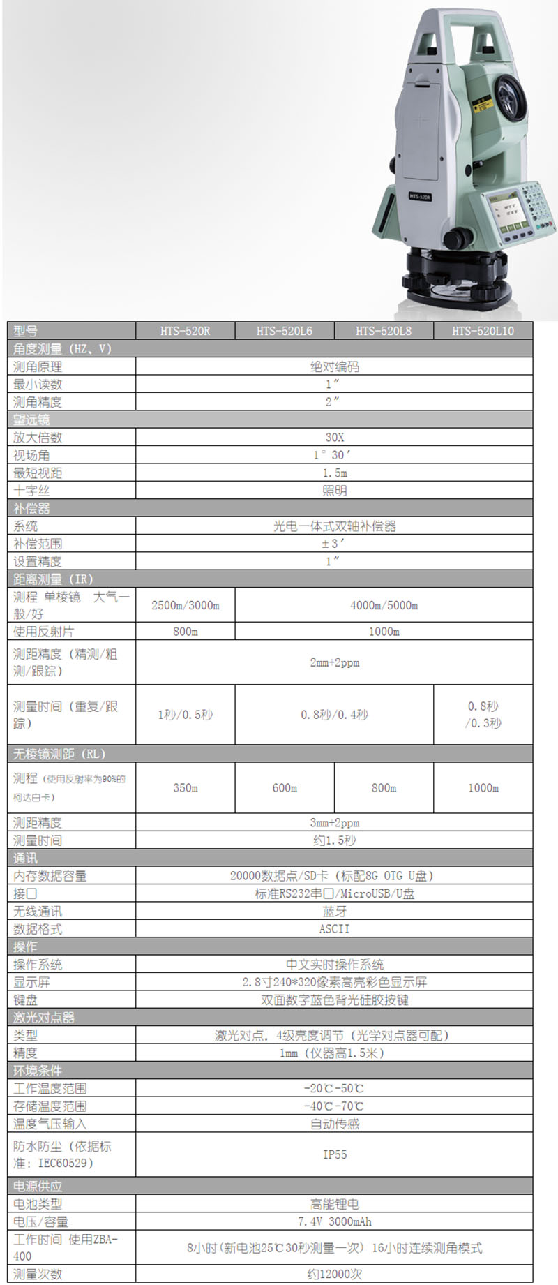 關(guān)鍵詞:測量儀器:中海達(dá)華星 HTS-520 彩屏系列全站儀,測量儀器|測繪儀器|全站儀|RTK|三維激光掃描儀|經(jīng)緯儀|水準(zhǔn)儀